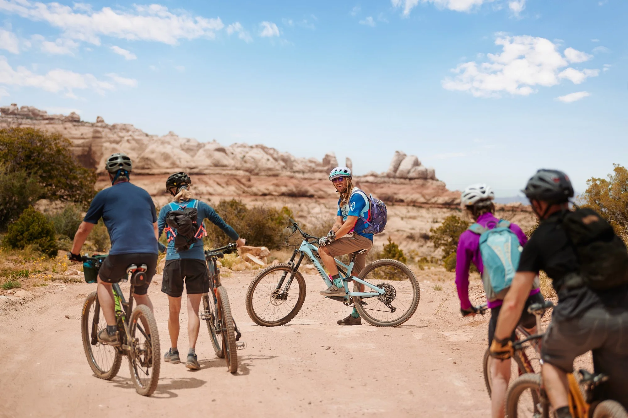 After working out the specifics with the company I was all signed up and ready for the week to come. The ride I joined was a six-day ride in Moab, Utah called Trail of the Ancients. Escape Adventures is a one-stop shop with the way they run their tours. The cost of the trip covers all your food and beverage, the guides prepare every meal for you, and the truck carries all of your baggage, camping gear, water, snacks, and any other beverages you’d like to bring. As for bicycles, you’re encouraged to bring your own, but they also have options for rentals. I can not express how satisfied I was with the meal being handled, the dietary options and variety of meals that they prepared during the six days were just amazing. Besides setting up and tearing down my tent, I felt like the only thing I had to worry about was drinking enough water, riding my bike, and enjoying the beautiful landscapes.